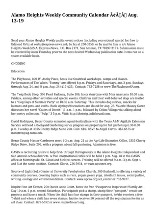 Alamo Heights Weekly Community Calendar โ Aug. 13 19 | PDF