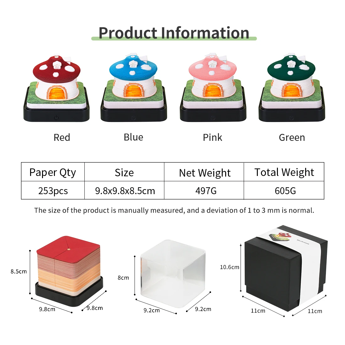3D Notepad Cubes Advent Calendar 2024 Cute Mushroom House Creative