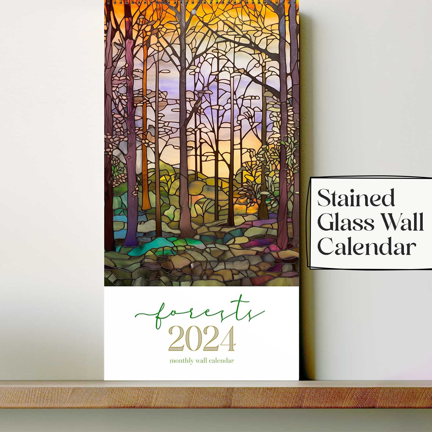 2024 Wall Calendar, Stained Glass Forests, Month at A Glance